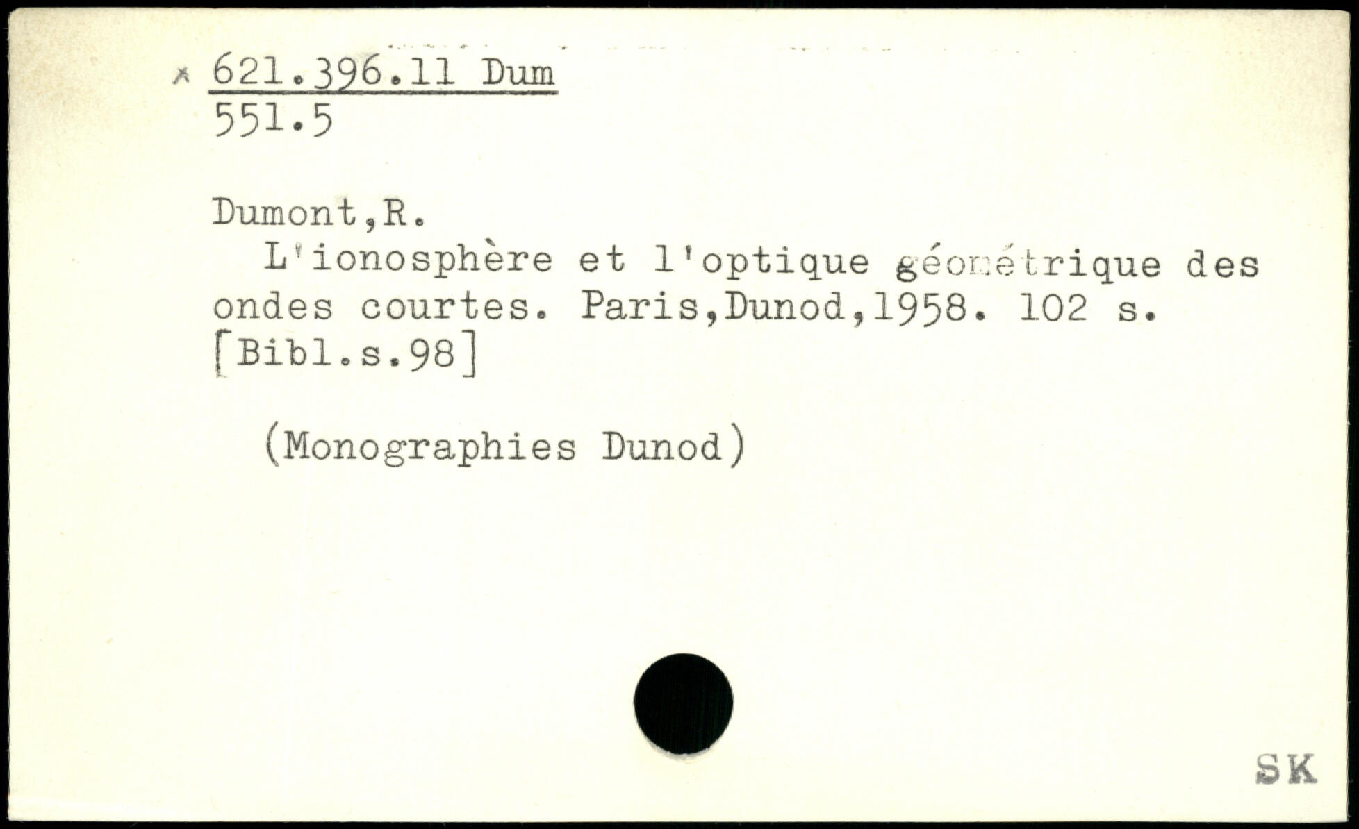 L'ionosphère et l'optique géométrique des ondes courtes.