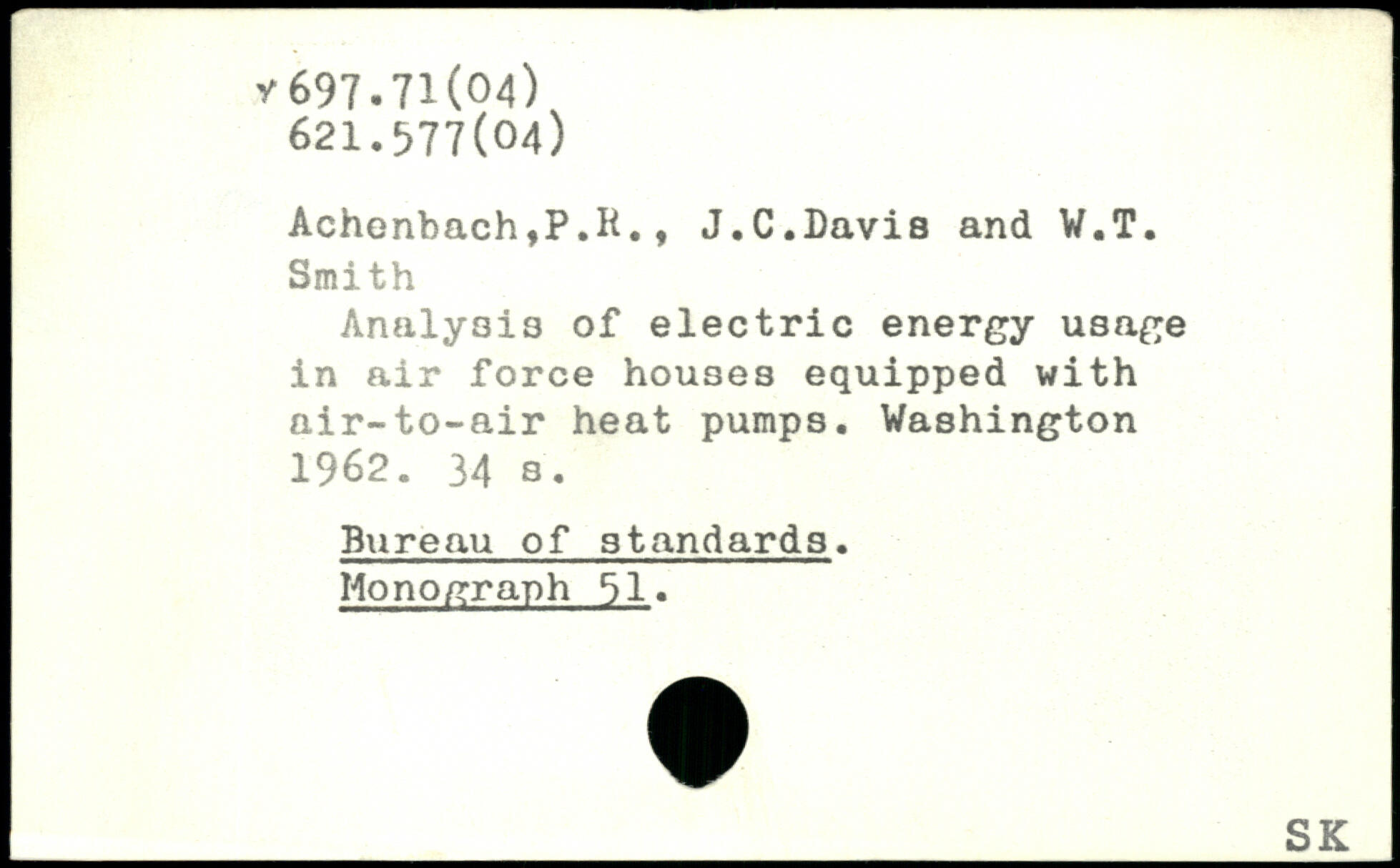 Achenbach,P.R., J.C.Davis and W.T. Smith Analysis of electric energy usage in air force houses equipped with air-to-air heat pumps.