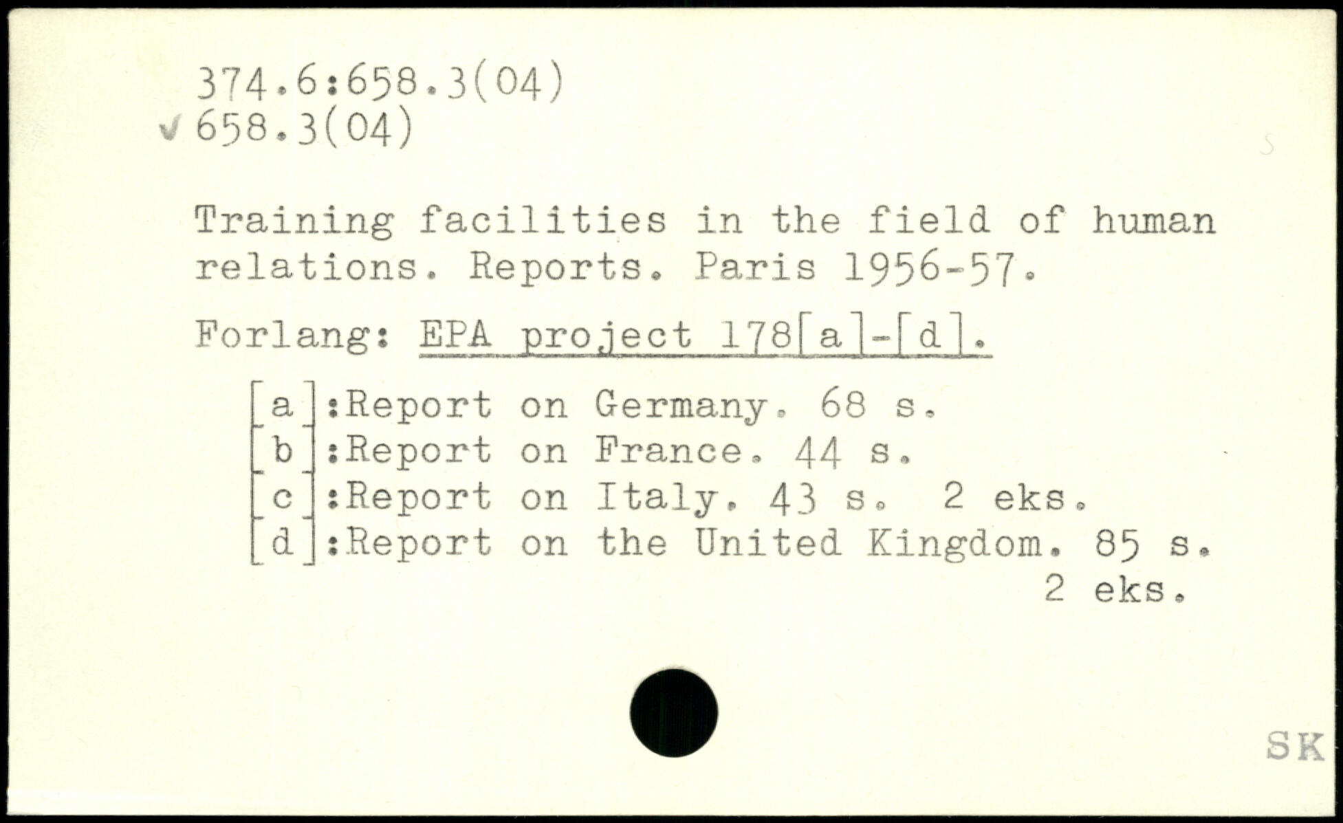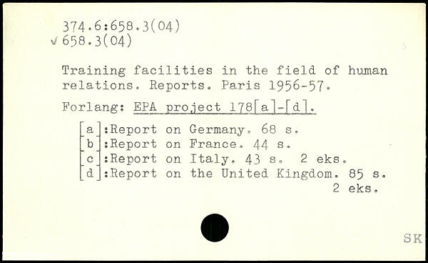 Training facilities in the field of human relations. Reports.