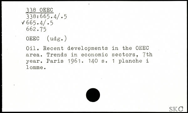 Oil. Recent developments in the OEEC area. Trends in economic sectors, 7th year.