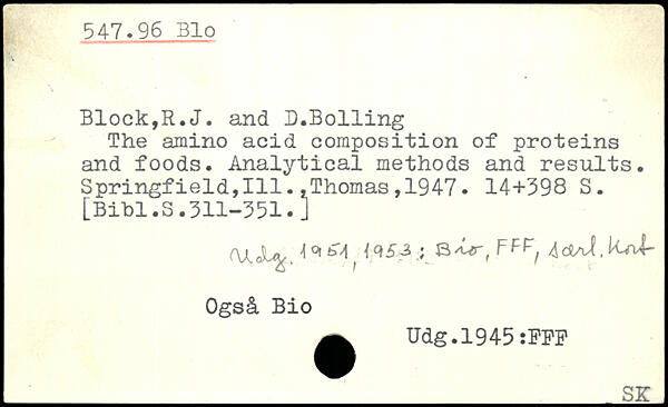 The amino acid composition of proteins and foods. Analytical methods and results. Springfield,111..Thomas,1947.