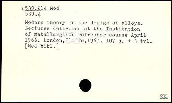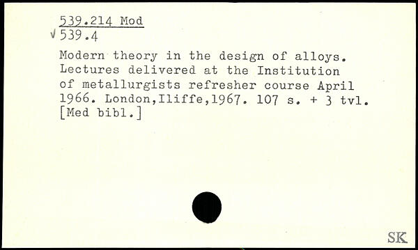 Modern theory in the design of alloys. Lectures delivered at the Institution of metallurgists refresher course April 1966.