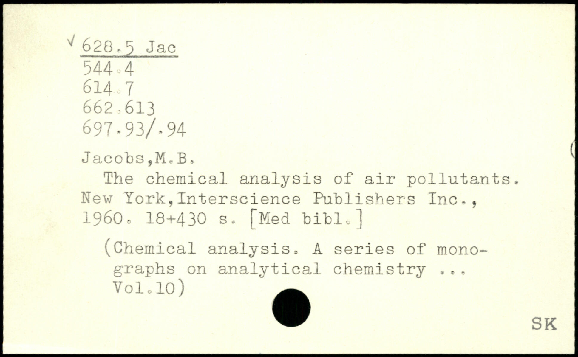 The chemical analysis of air pollutants, New York,Interscience Publishers Inc,, 1960c