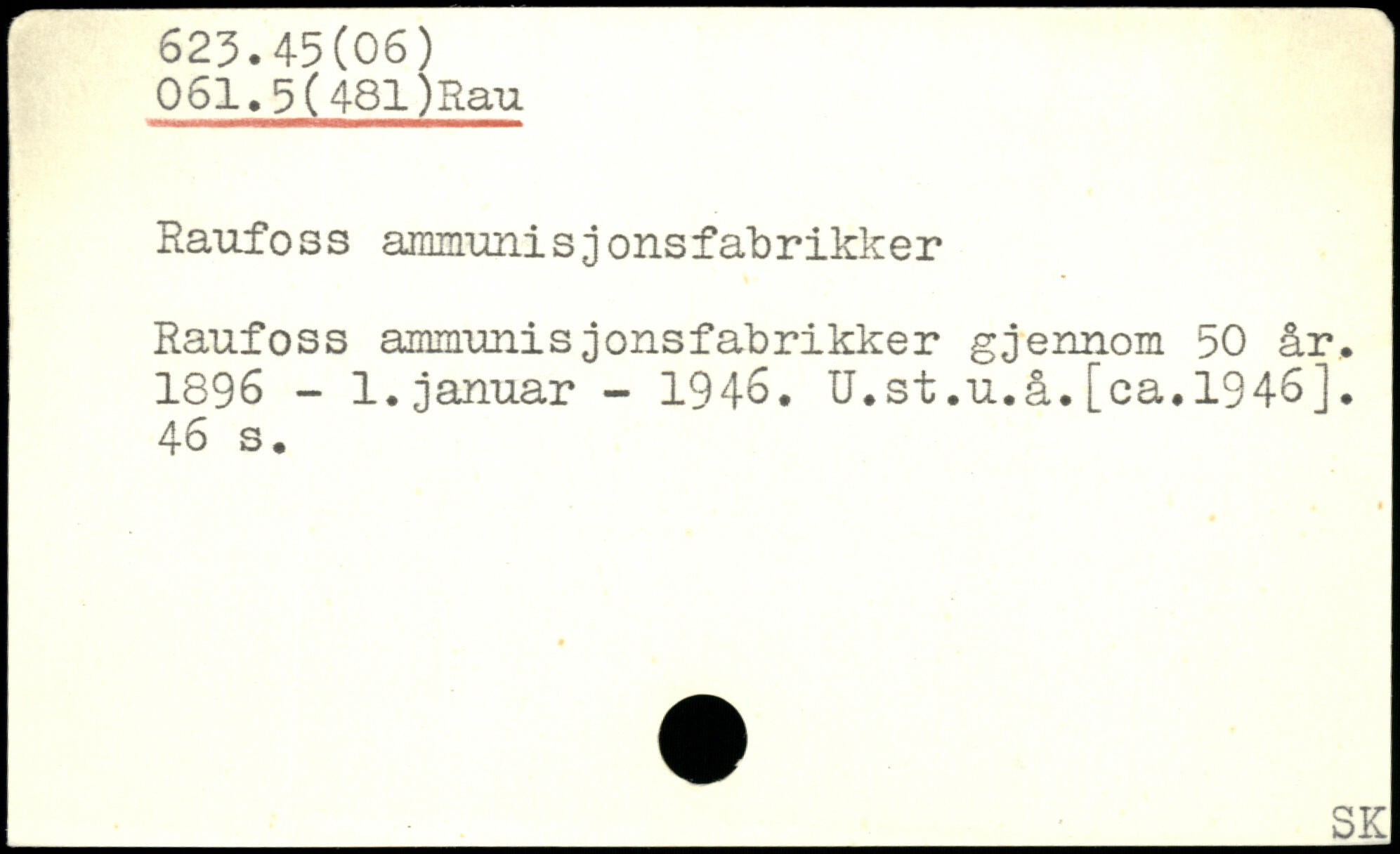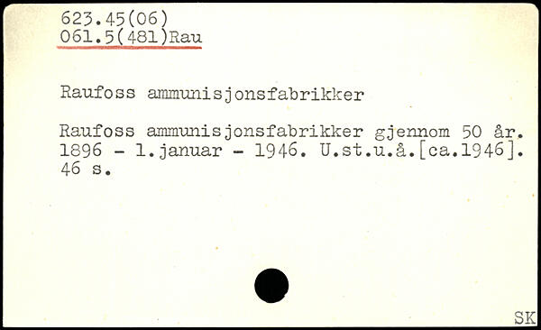 Raufoss ammuni s jons fabrikker Raufoss ammunis jonsfabrikker gjennom 50 år. 1896 - 1.januar - 1946. U.st.u.å.[ca.1946].