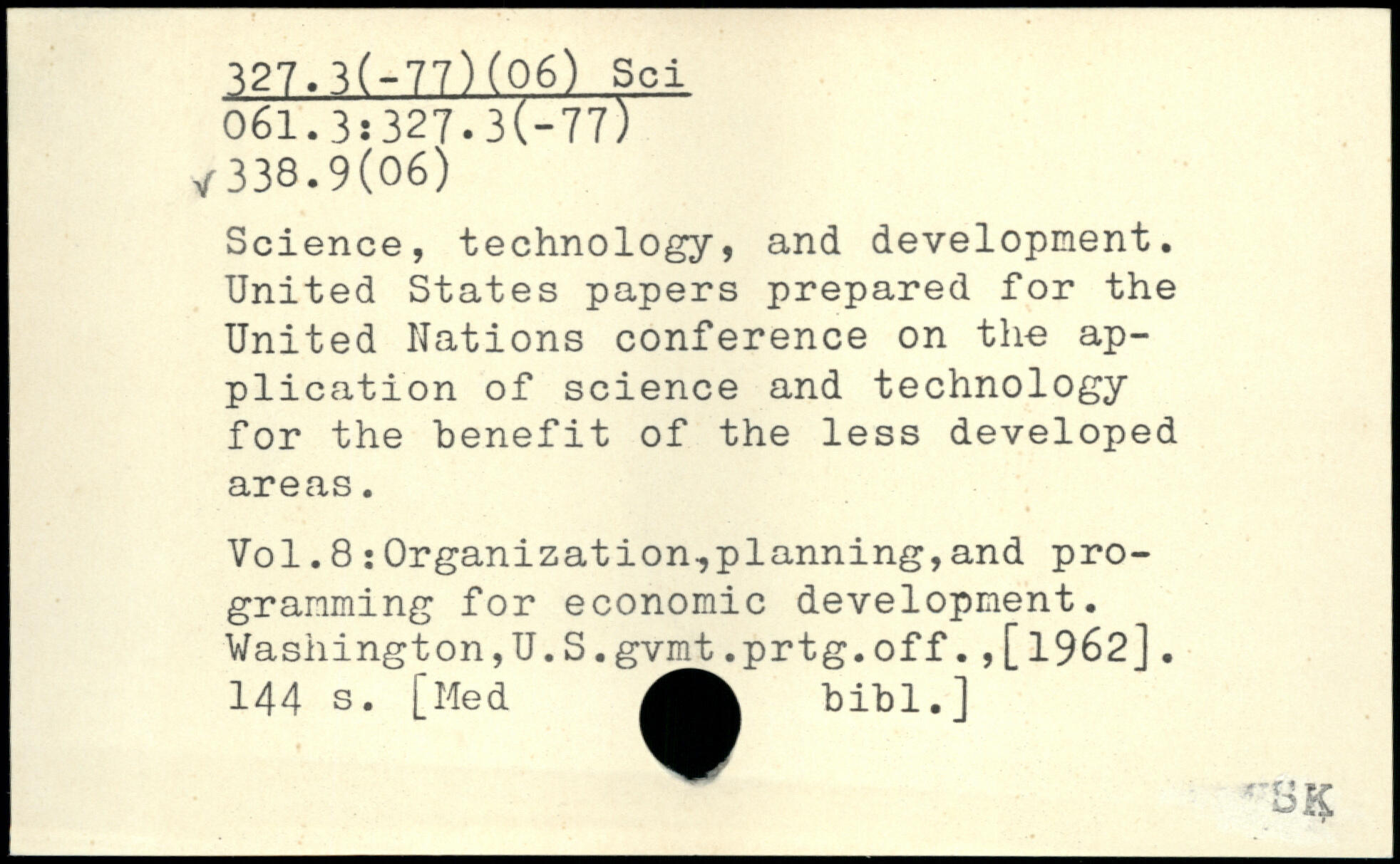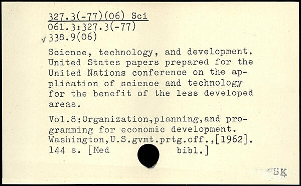 Science, technology, and development. United States papers prepared for the United Nations conference on the application of science and technology for the benefit of the less developed areas.