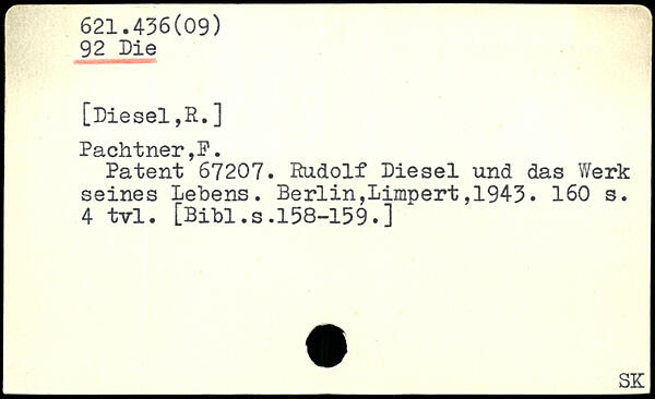 Patent 67207. Rudolf Diesel und das Werk seines Lebens.