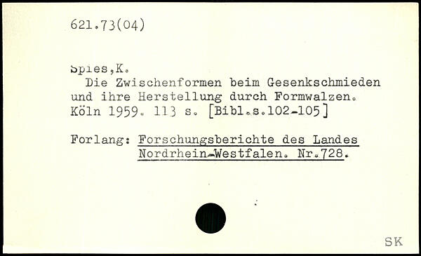 Die Zwischenformen beim Gesenkschmieden und ihre Herstellung durch Formwalzeno