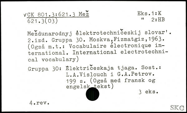 Mezdunarodnyj élektrotechniceskij slovar’. 2.izd. Gruppa 30.