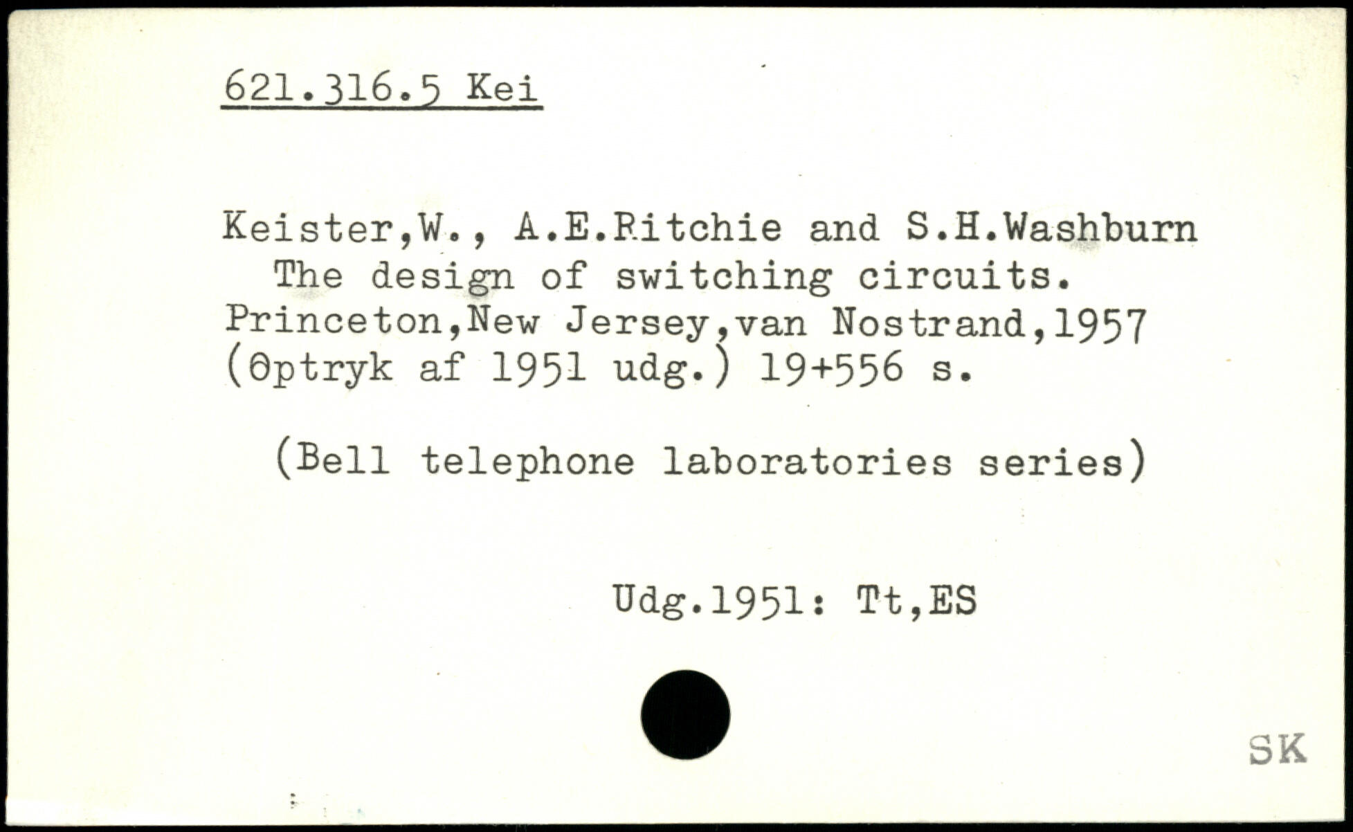 Keister,W., A.E.Ritchie and S.H.Washburn The design of switching circuits. Princeton,New Jersey,van Nostrand,1957 (©ptryk af