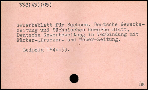 Gewerbeblatt für Sachsen. Deutsche Gewerbezeitung und Sächsisches Gewerbe—Blatt, Deutsche Gewerbezeitu^ig in Verbindung mit Färber-,Drucker- und Weber-Zeitung. Leipzig 184o-59.