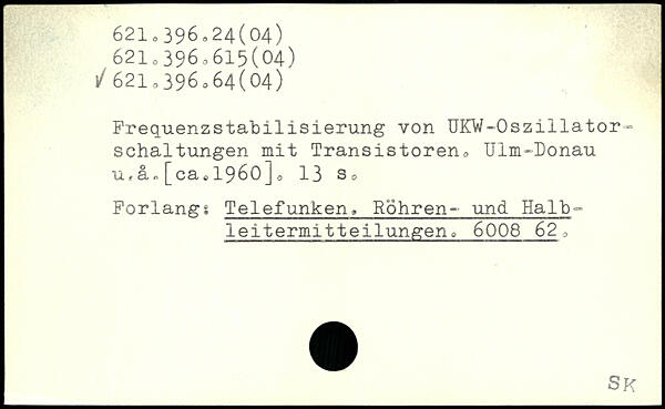 Frequenzstabilisierung von UKW-Oszillator-Schaltungen mit Transistoren, Ulm-Donau u,ä,[ca, 1960]