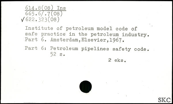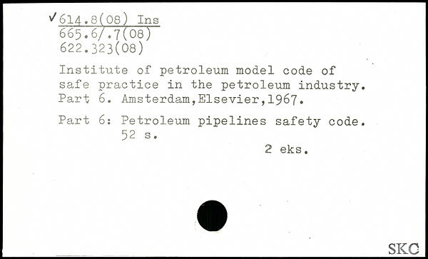 Institute of petroleum model code of safe practice in the petroleum industry. Part 6.