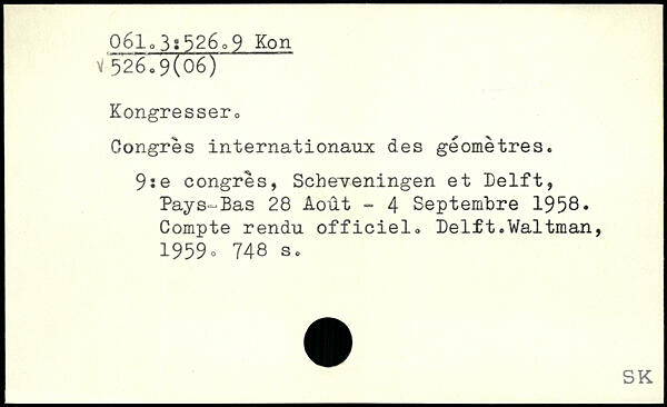 Congrès internationaux des géomètres. 9:e congrès, Scheveningen et Delft, Pays-Bas 28 Août -