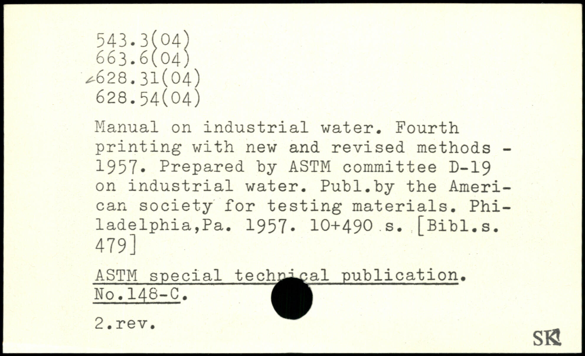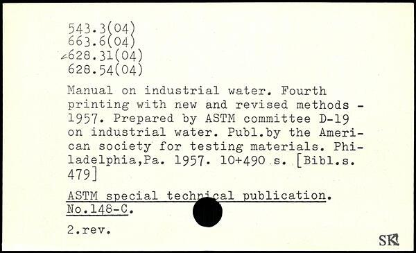 Manual on industrial water. Fourth printing with new and revised methods -1957. Prepared by ASTM committee D-19 on industrial water.