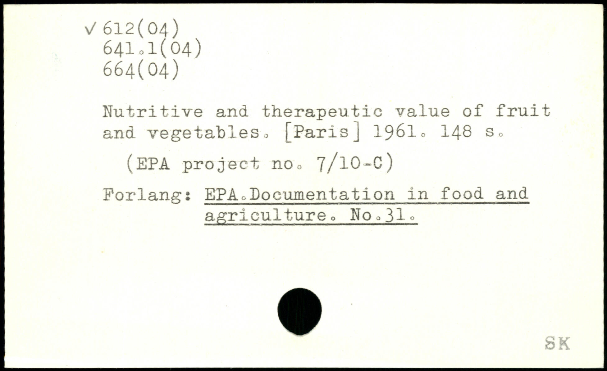 Nutritive and therapeutic value of fruit and vegetables.