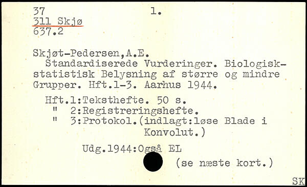Sk;jøt-Pedersen,A.E. Standardiserede Vurderinger. Biologiskstatistisk Belysning af større og mindre Grupper. Hf1.1-3. Aarhus 194-4. Hft.l:Teksthefte.