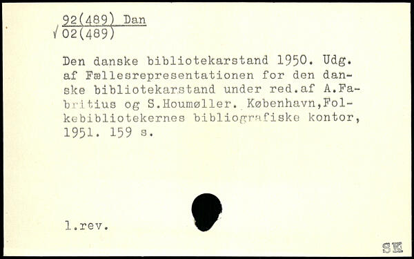 Den danske bibliotekarstand 1950, Udg. af Fællesrepresentationen for den danske bibliotekar,stand under red.af A.Fa-britius og S.Houmøller.