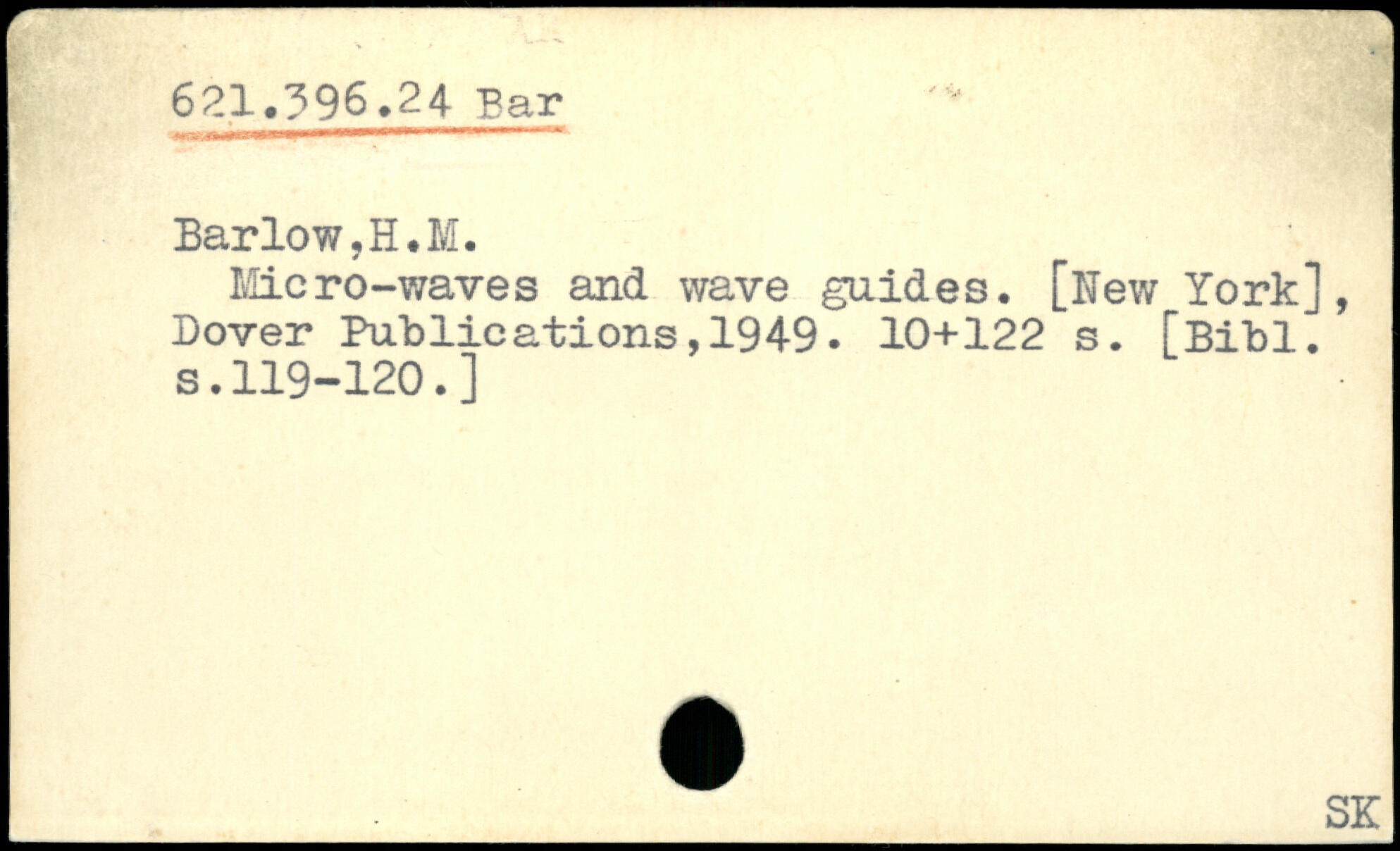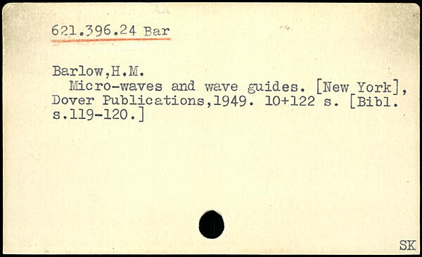 Micro-waves and wave guides. [New York], Dover Publications,1949.