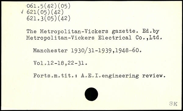 The Metropolitan-Vickers gazette, Ed.by Metropolitan-Vickers Electrical Co,,Ltd.