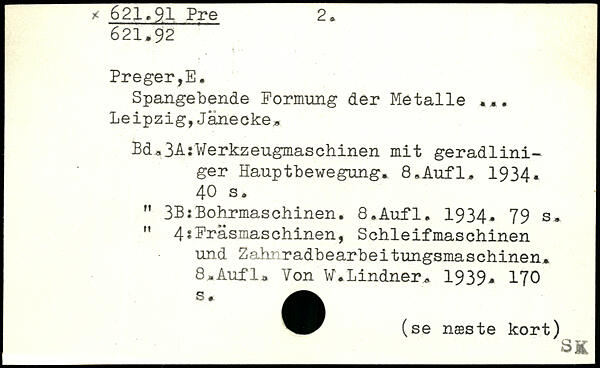 Spangebende Formung der Metalle Leipzig,Jänecke, Bd,3A:Werkzeugmaschinen mit geradliniger Hauptbewegung, 8#Aufl, 1934.