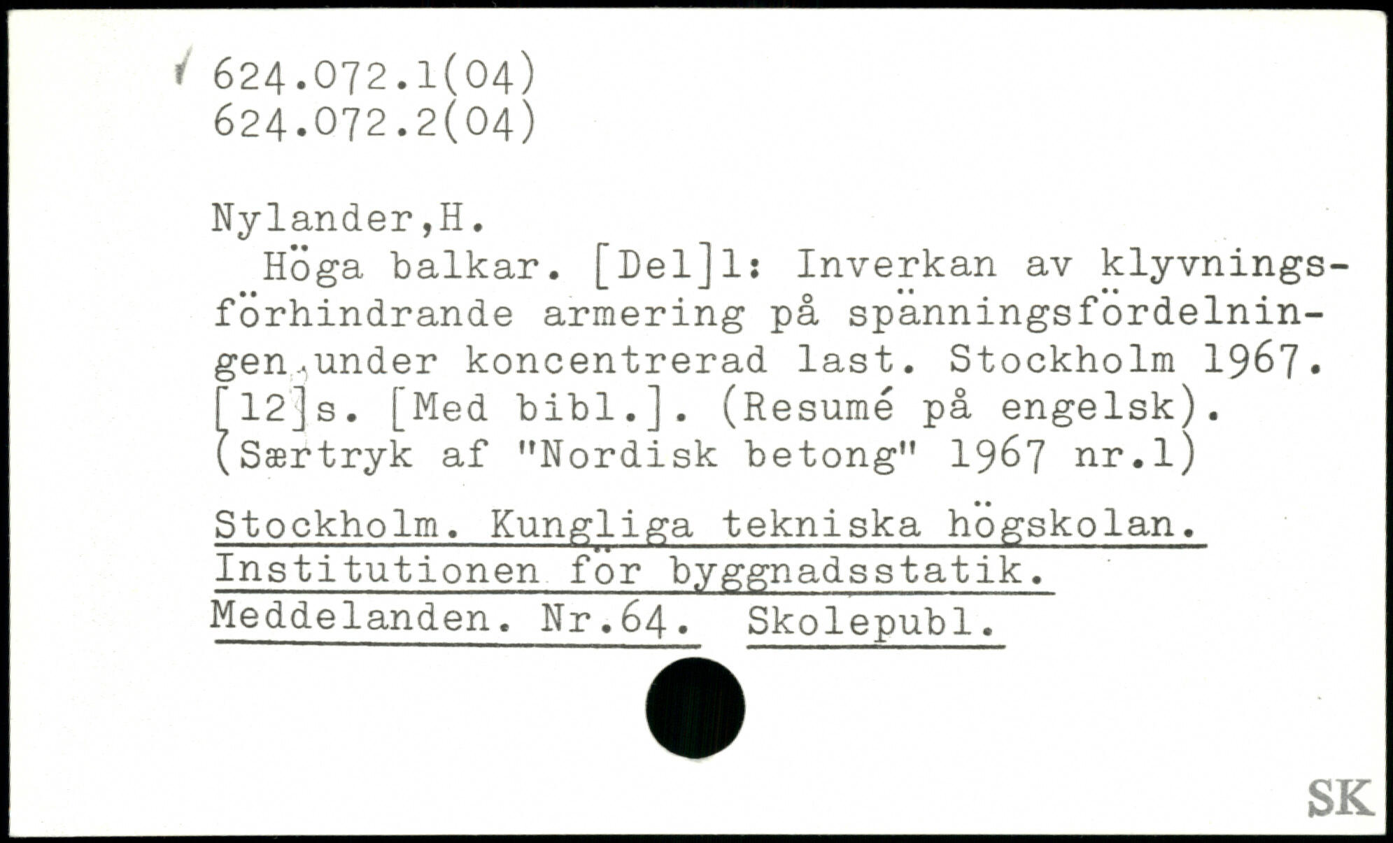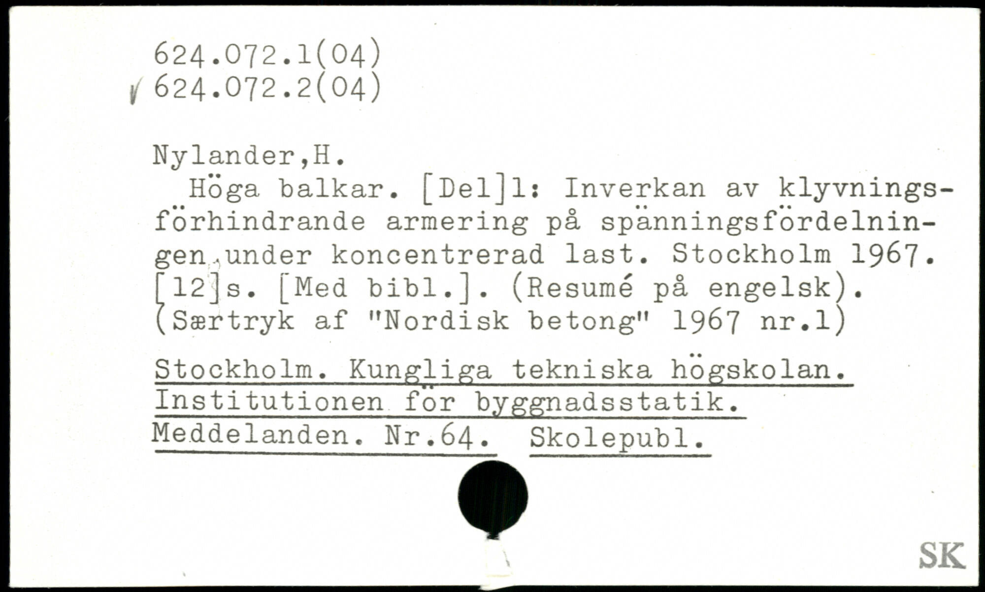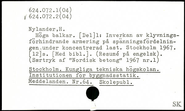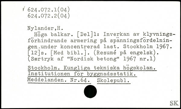 Höga balkar. [Del]l: Inverkan av klyvnings-förhindrande armering på spanningsfordelnin-gen.under koncentrerad last.