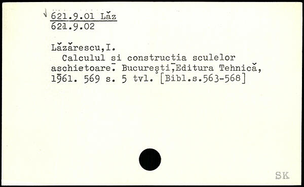 Calculul si constructia sculelor aschietoare. Bucureçti,Editura Tehnicä, 1961.