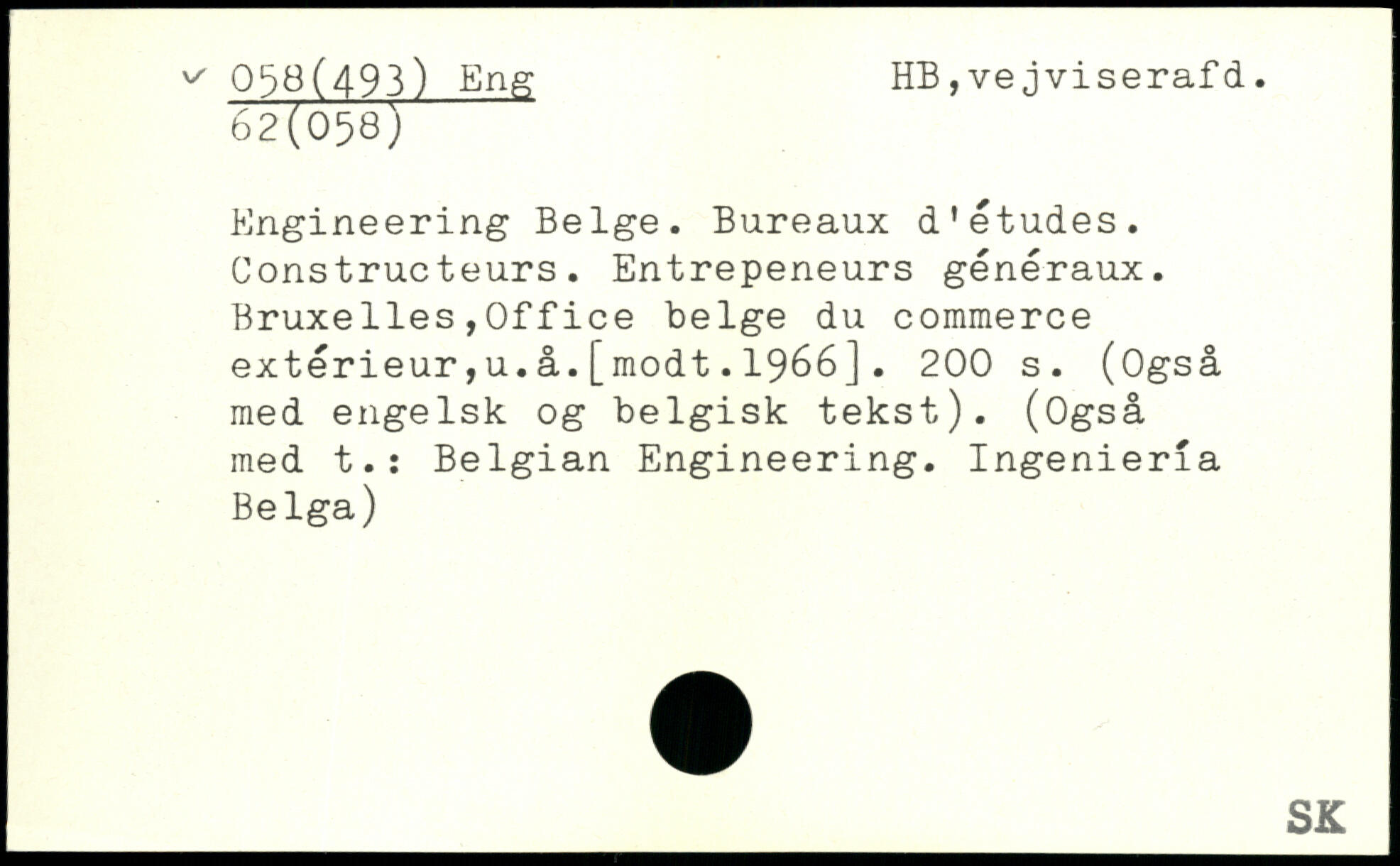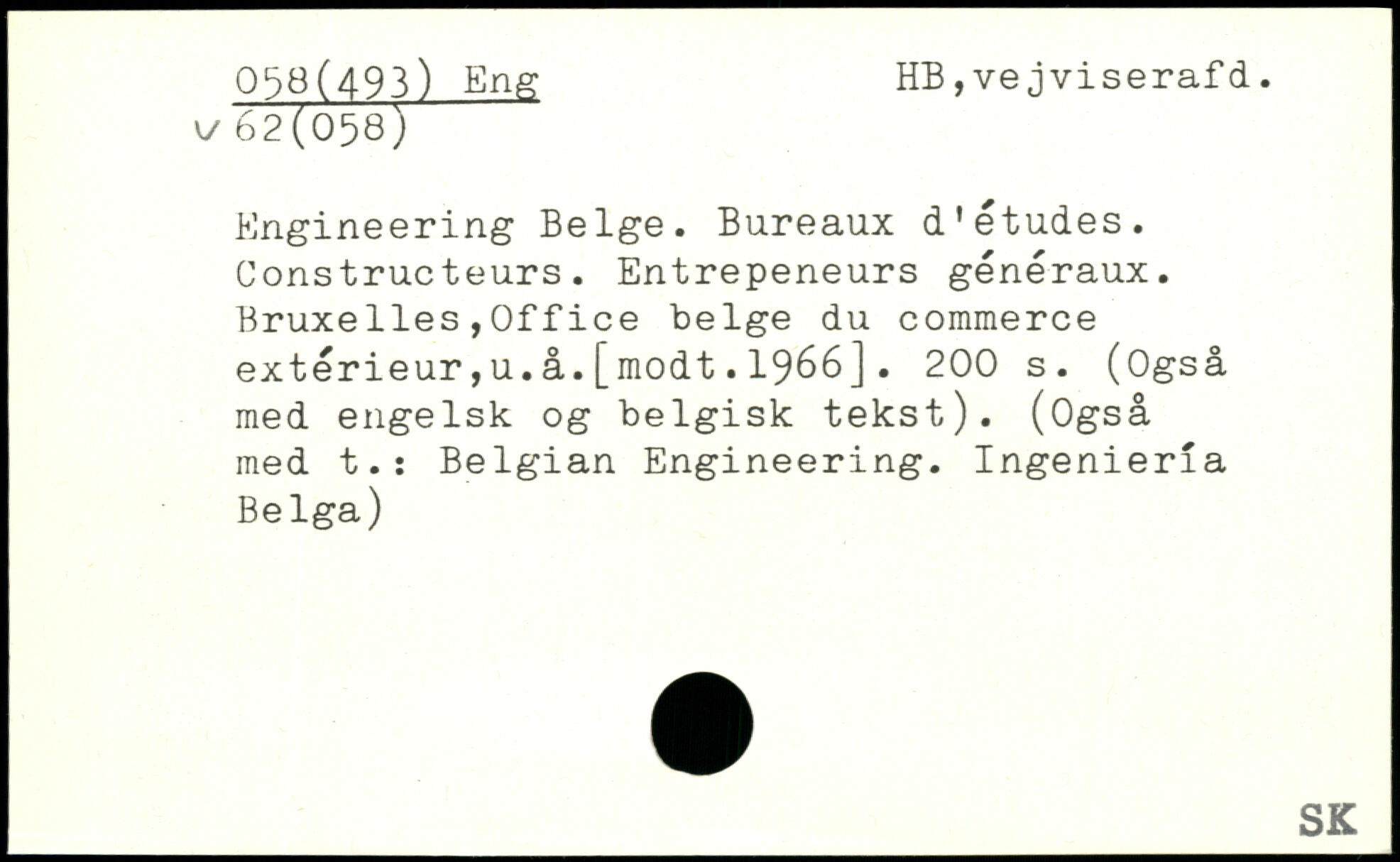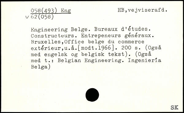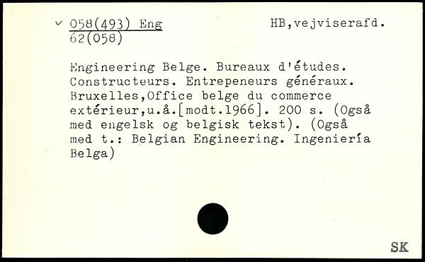 Engineering Belge. Bureaux d’études. Constructeurs. Entrepeneurs généraux. Bruxelles,Office belge du commerce extérieur,u.å.[modt.1966].