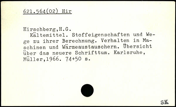Kältemittel. Stoffeigenschaften und Wege zu ihrer Berechnung. Verhalten in Maschinen und Wärmeaustauschern. Übersicht über das neuere Schrifttum.