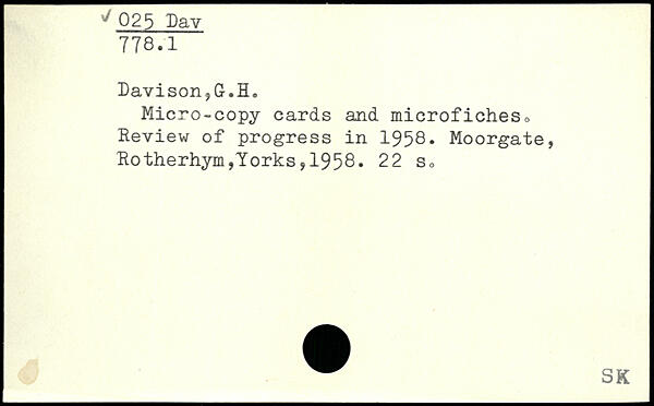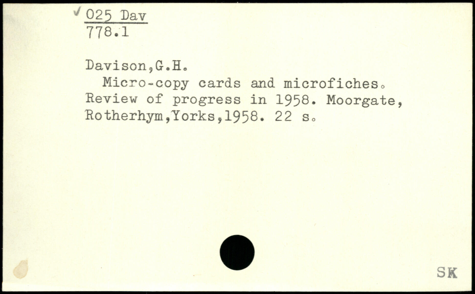 Micro-copy cards and microfiches. Review of progress in 1958.