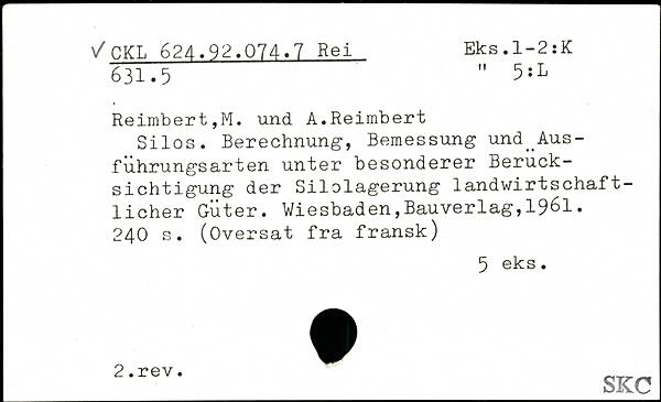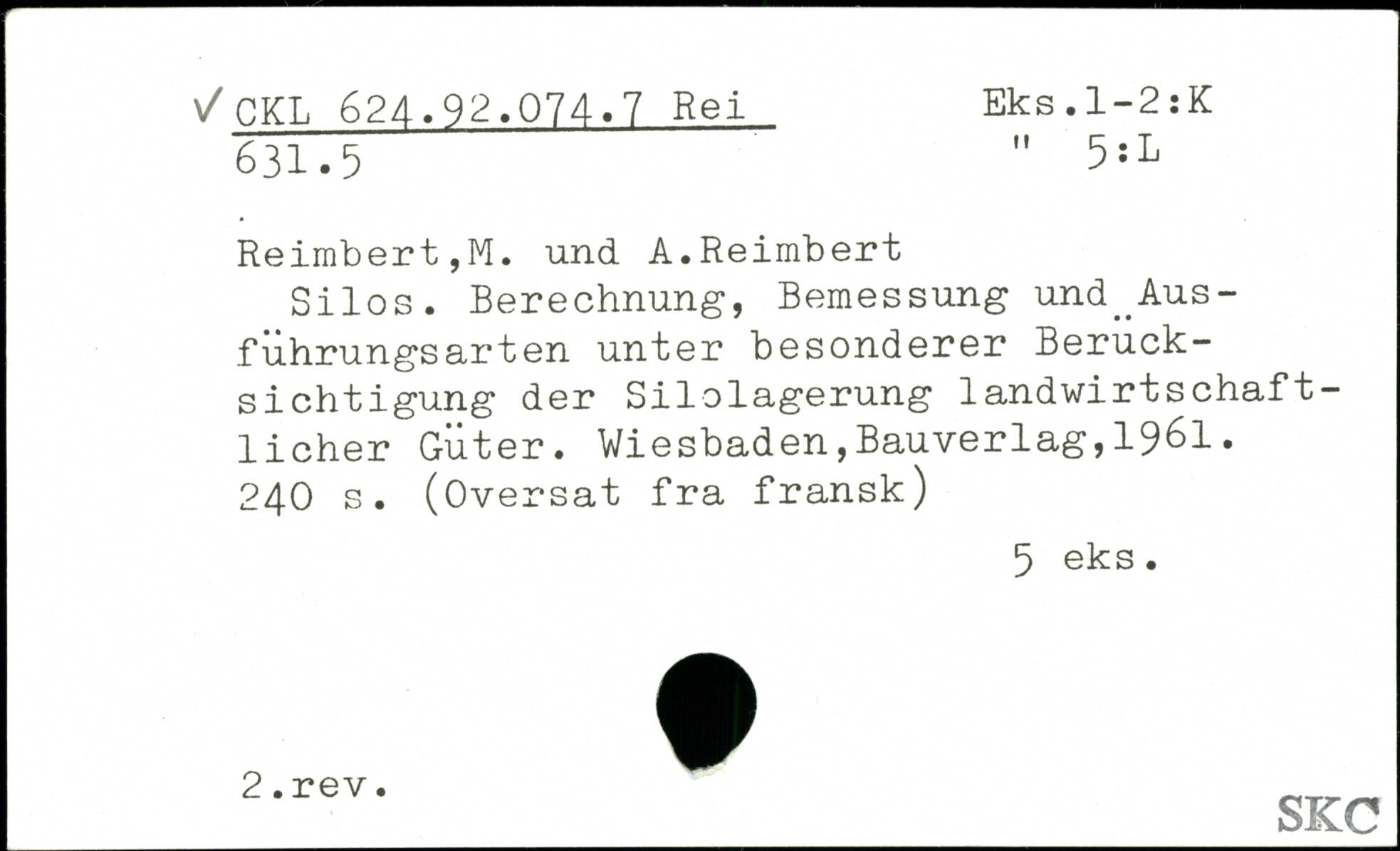 Silos. Berechnung, Bemessung und^Ausführungsarten unter besonderer Berücksichtigung der Silolagerung landwirtschaftlicher Guter.