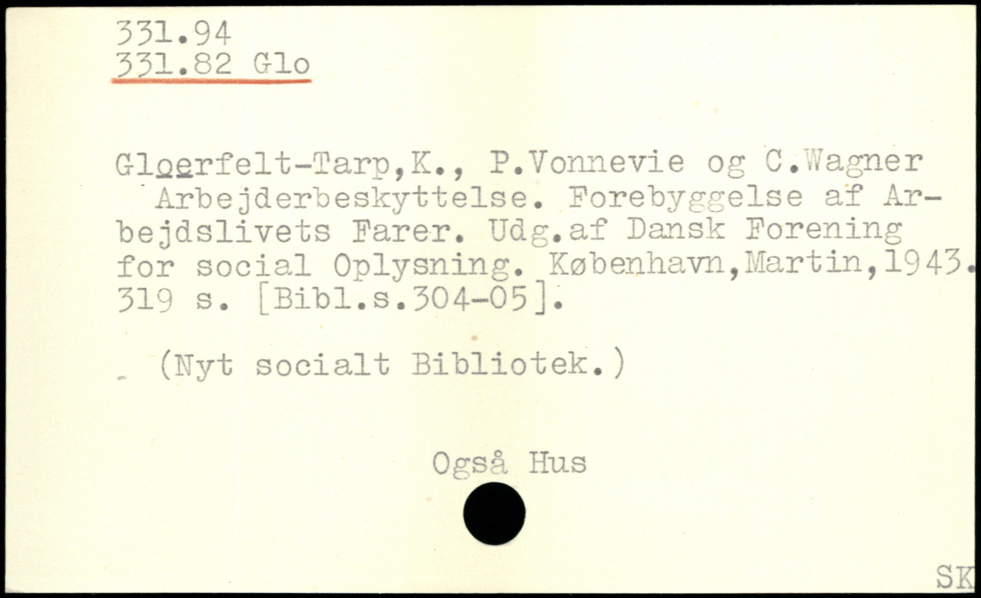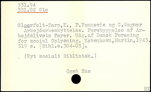 G-l££rf elt-Tarp,K., P.Vonnevie og C.Wagner Arbejderbeskyttelse. Forebyggelse af Arbejdslivets Farer. Udg.af Fansk Forening for social Orlysning.