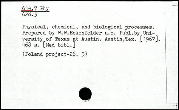Physical, chemical, and biological processes. Prepared by W.W.Eckenfelder a.o.