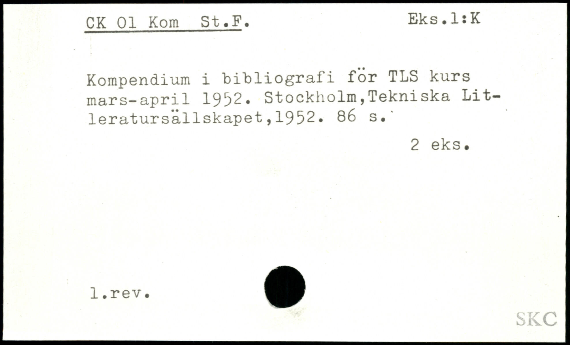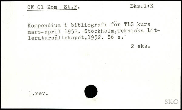 Kompendium i bibliografi for TLS kurs mars-april 1952.