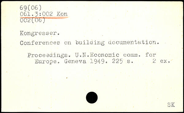 Conferences on builaing documentation. Proceedings. U.N.Economic comm, for Europe.