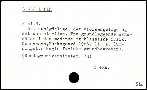 Det uundgåelige, det uforgængelige og det uoprettelige. Tre grundlæggende synsmåder i den moderne og klassiske fysik.