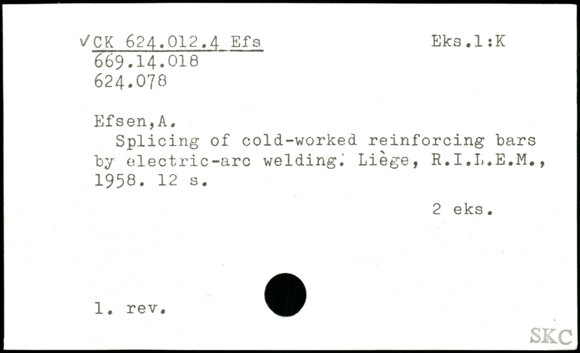 Splicing of cold-worked reinforcing bars by electric-arc weldingJ Liège, R.I.L.E.M., 1958.
