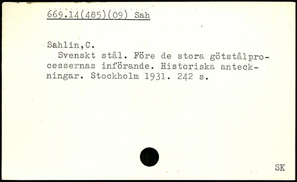 Svenskt stål. Före de stora götstålpro-cessernas införande. Historiska anteckningar.