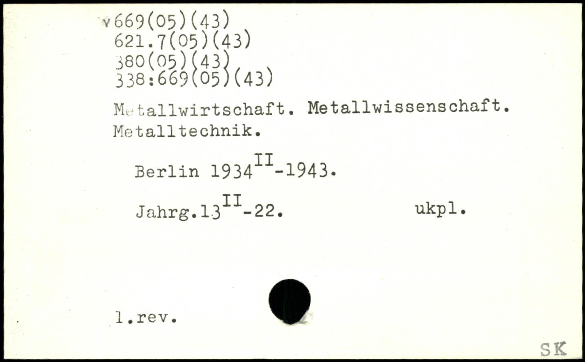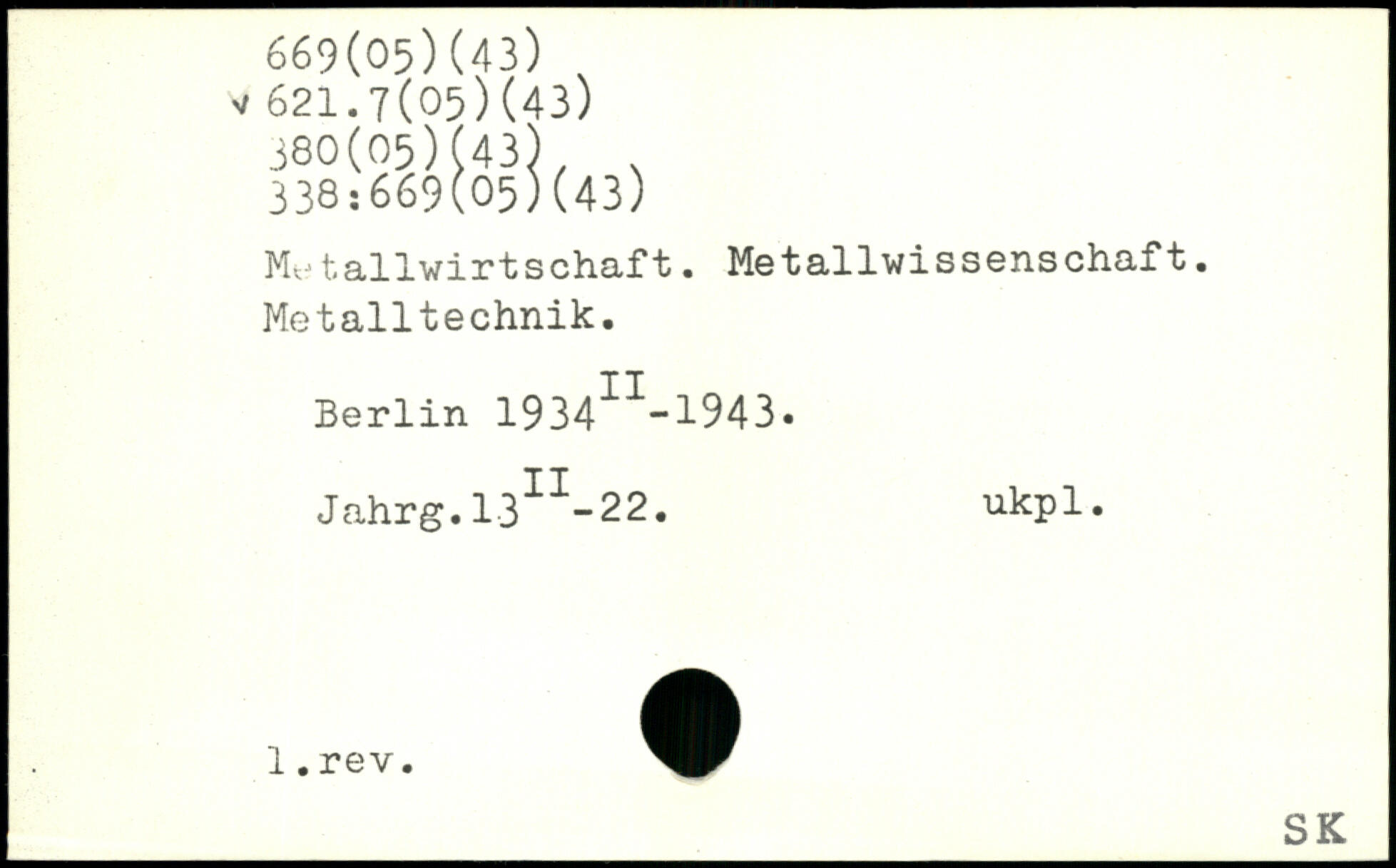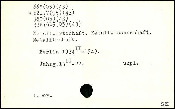 Met.allwirtschaft. Metallwissenschaft. Metalltechnik.