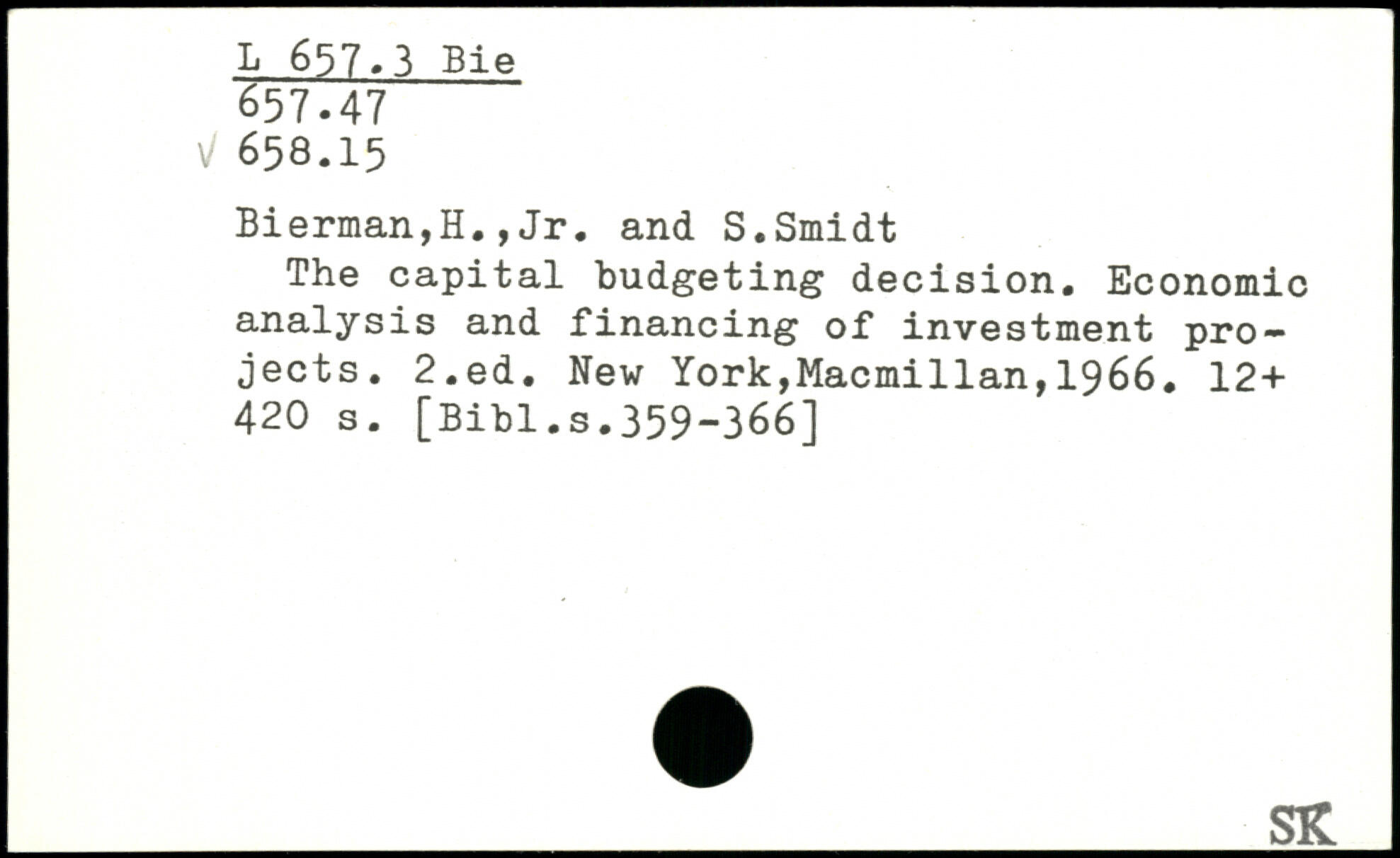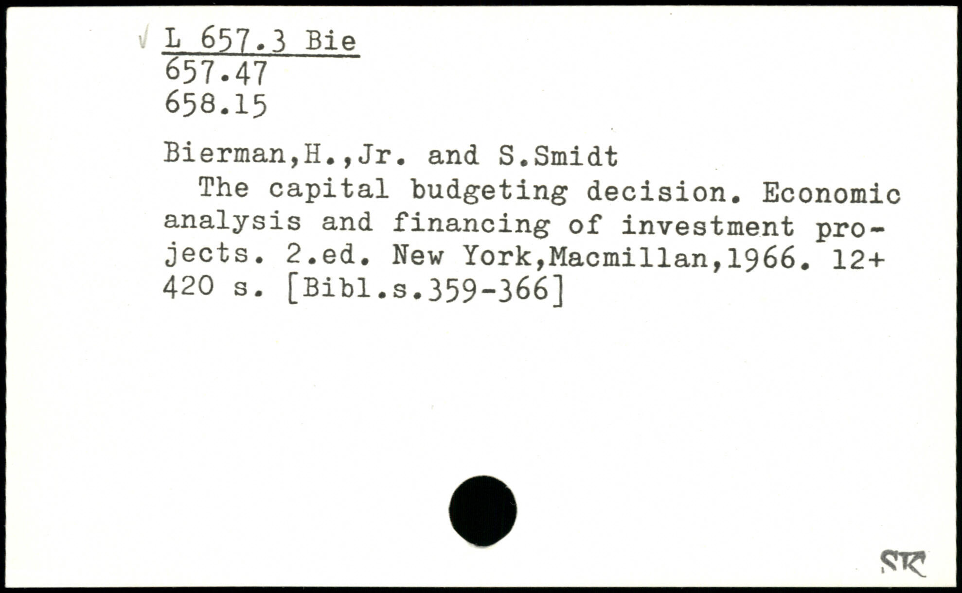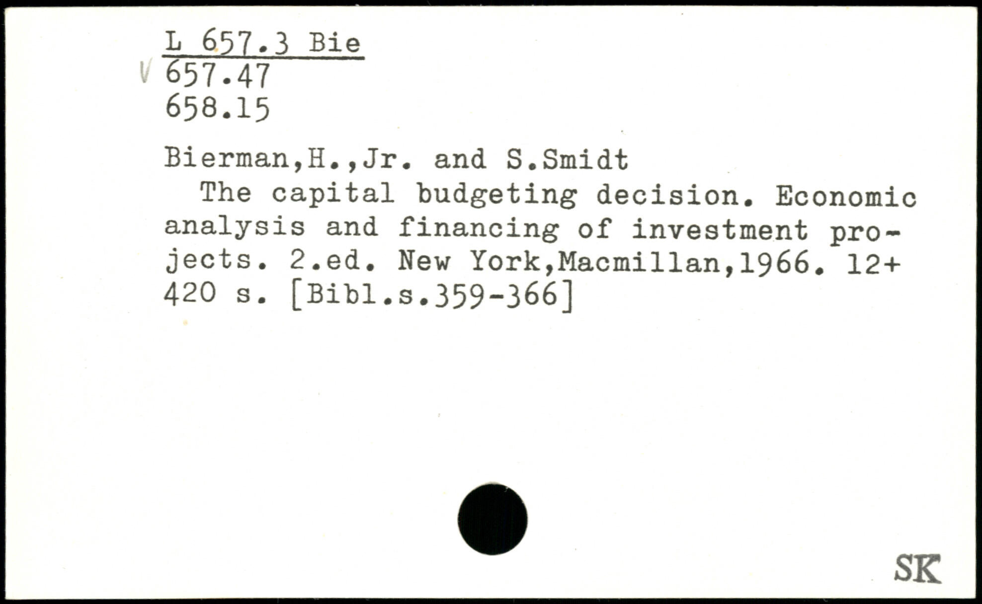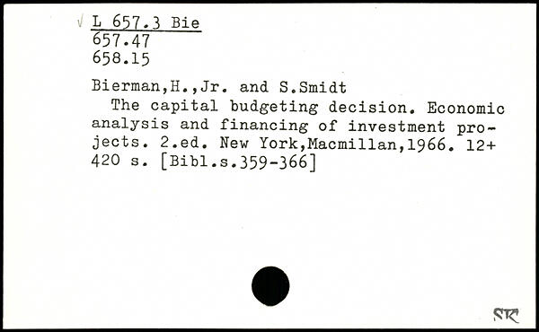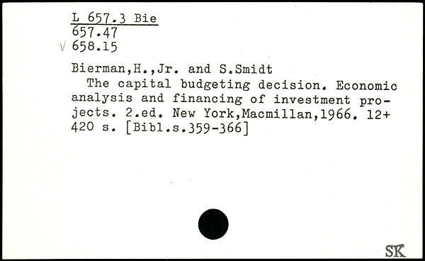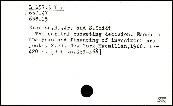 Bierman,H.,Jr. and S.Smidt The capital budgeting decision. Economic analysis and financing of investment projects.