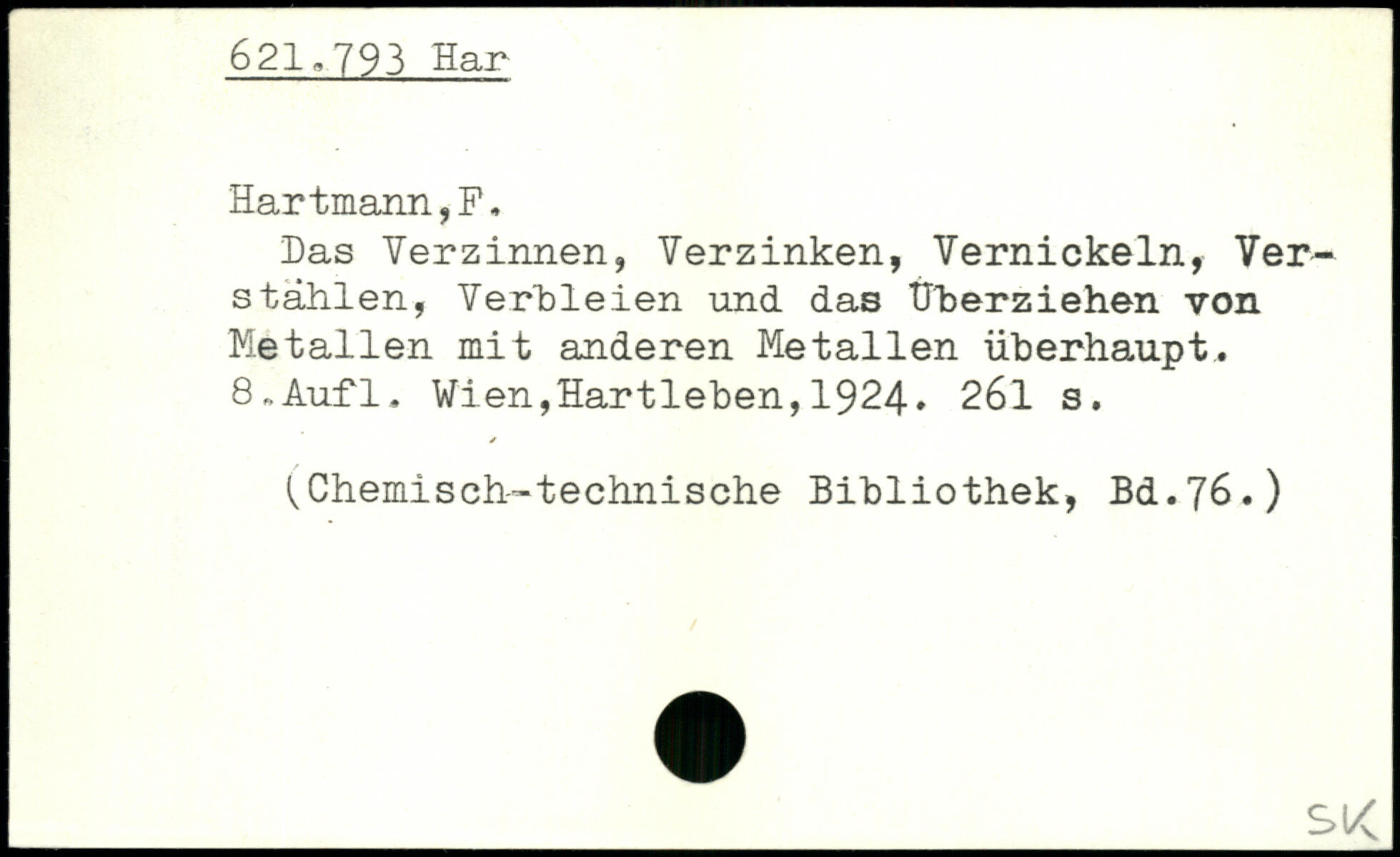 Das Verzinnen, Verzinken, Vernickeln, Ver-stählen, Verbleien und das Überziehen von Metallen mit anderen Metallen überhaupt.. 8,Aufl.