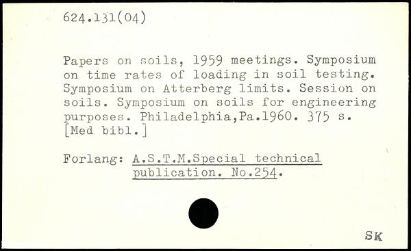 Papers on soils, 1959 meetings. Symposium on time rates of loading in soil testing. Symposium on Atterberg limits. Session on soils. Symposium on soils for engineering purposes. Philadelphia,Pa.1960.