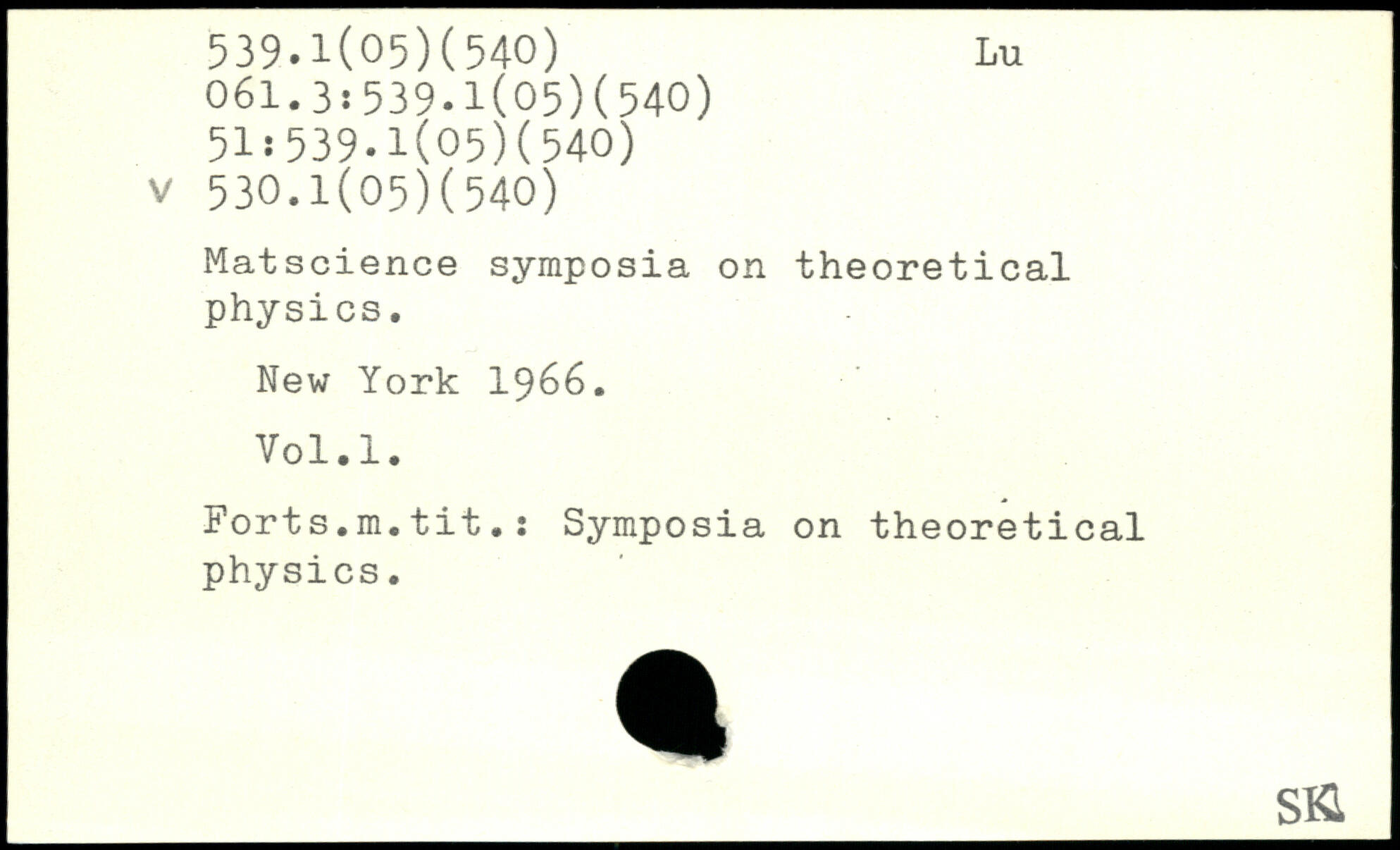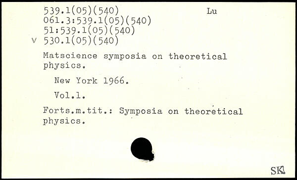 Matscience symposia on theoretical physics.