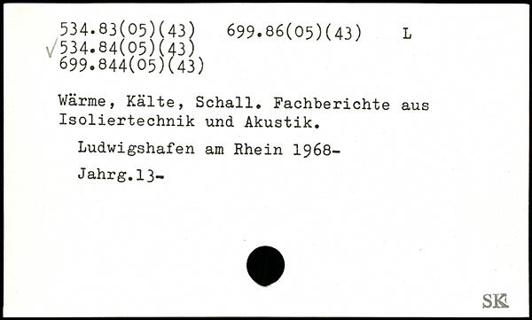 Wärme, Kälte, Schall. Fachberichte aus Isoliertechnik und Akustik. Ludwigshafen am Rhein 1968- Jahrg.13-