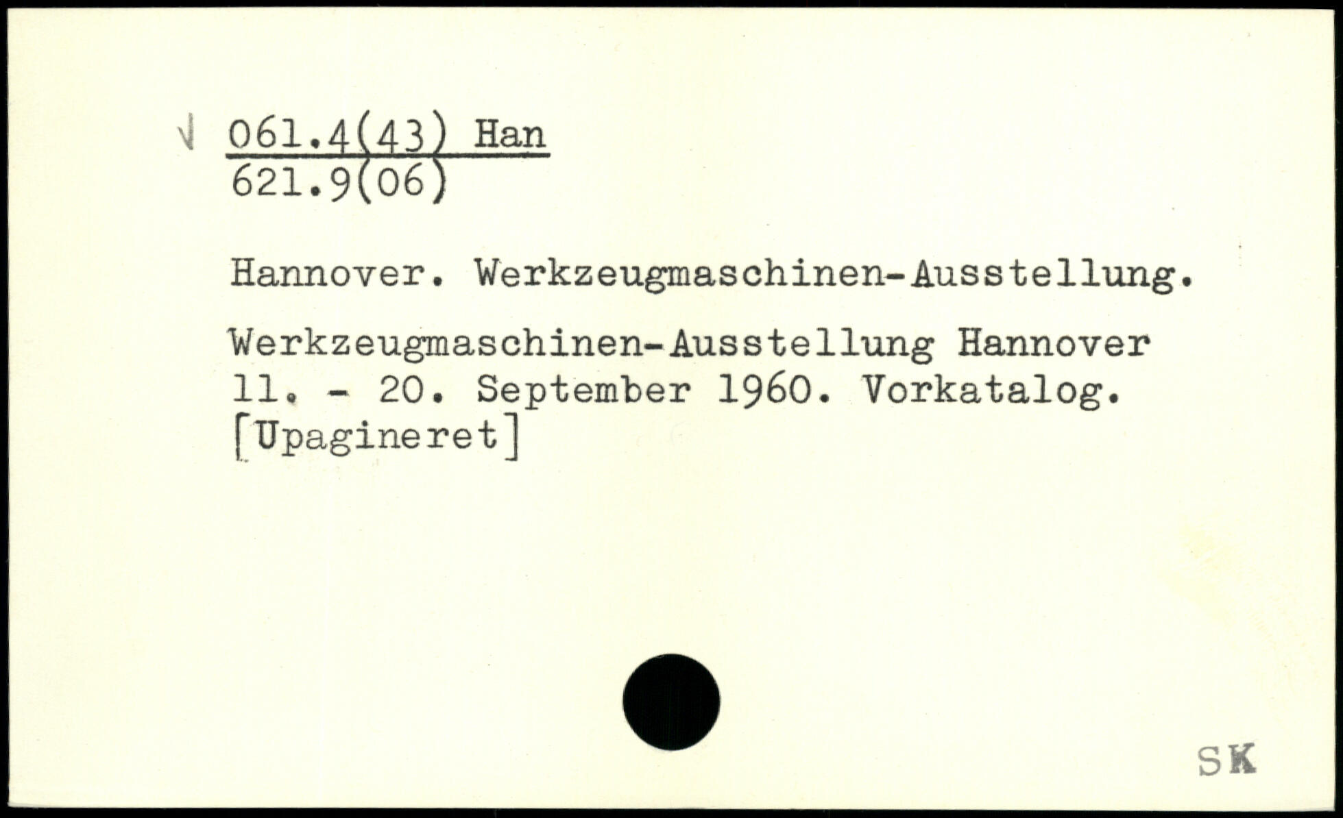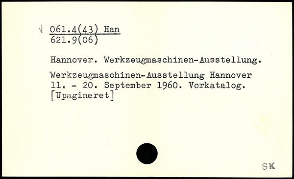 Hannover. Werkzeugmaschinen-Ausstellung. Werkzeugmaschinen-Ausstellung Hannover 11. - 20. September 1960. Vorkatalog. [TJpagineret]