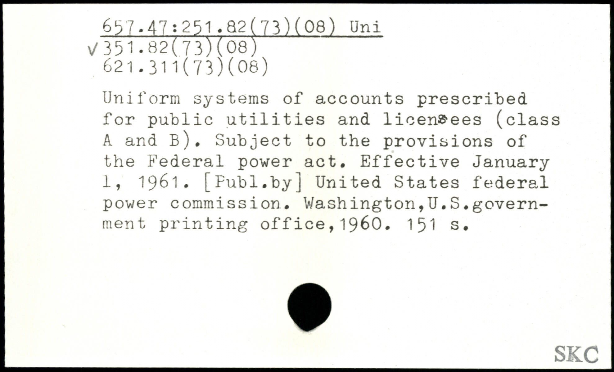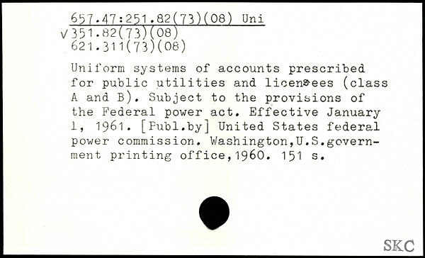 Uniform systems of accounts prescribed for public utilities and licensees (class A and B). Subject to the provisions of the Federal power act. Effective January 1, 1961. [Fubl.by] United States federal power commission. Washington,U.S.government printing office,1960.