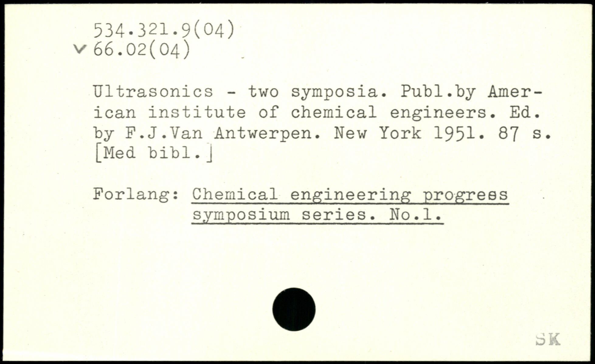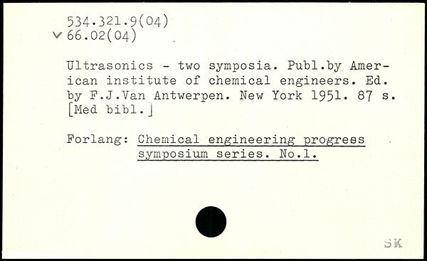 Ultrasonics - two symposia. Piib 1.by American institute of chemical engineers. Ed. by P.J.Van Antwerpen.