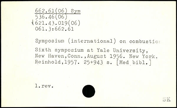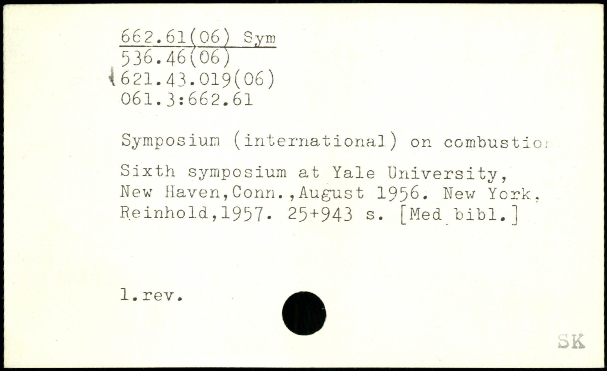 Symposium ( international) on combustior. Sixth symposium at Yale University, Nev Haven,Conn.,August 1956. Nev York. Reinhold,1957.