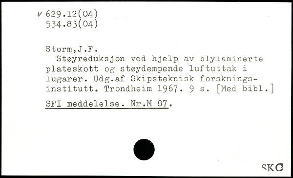 Støyreduksjon ved hjelp av blylaminerte plateskott og støydempende luftuttak i lugarer. Udg.af Skipsteknisk forskningsinstitutt.