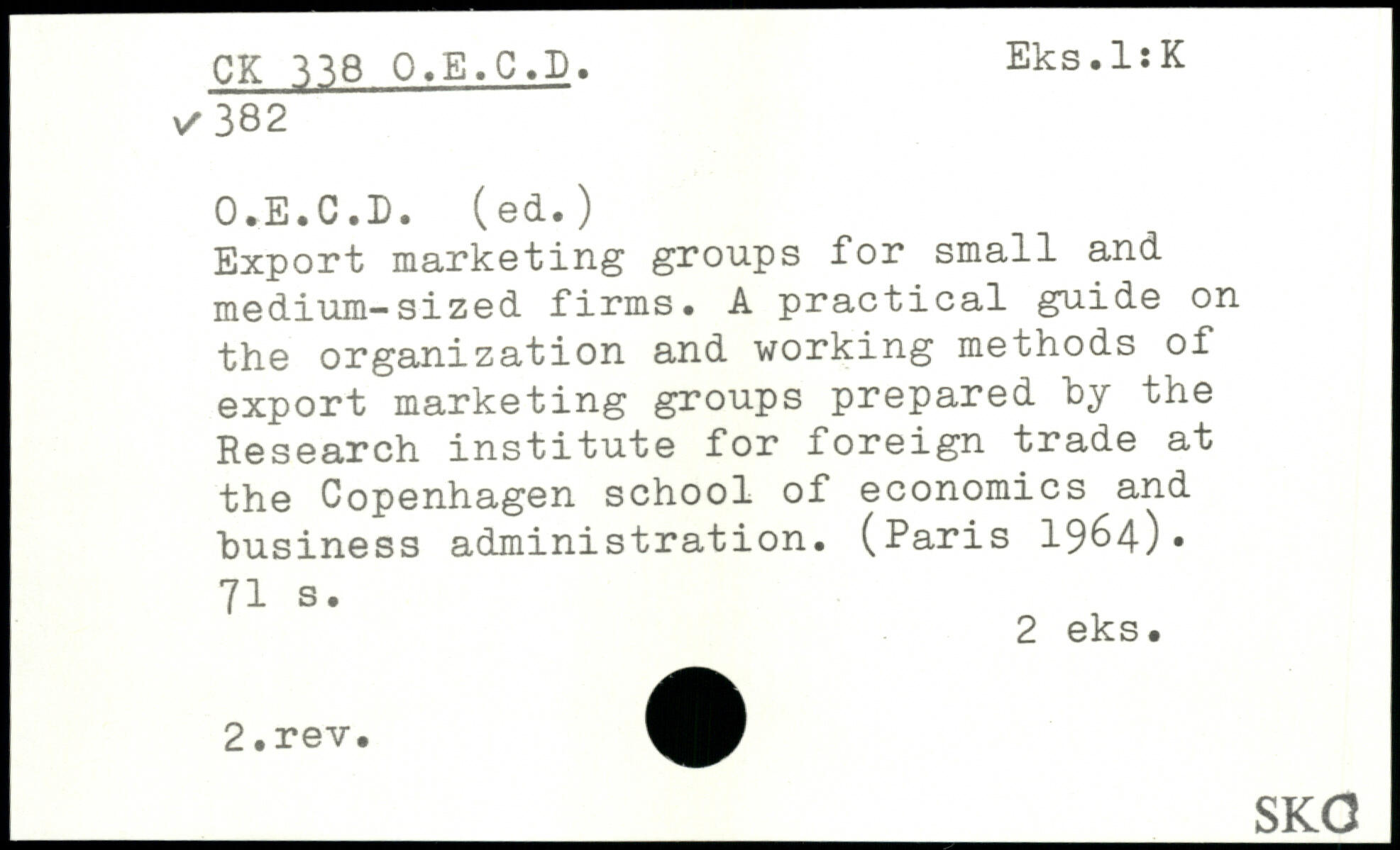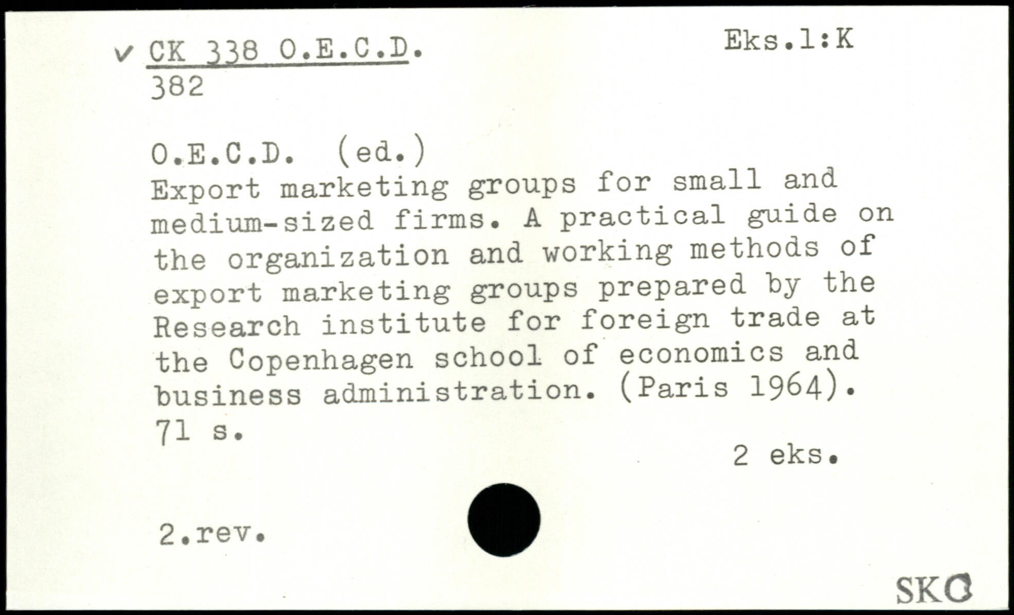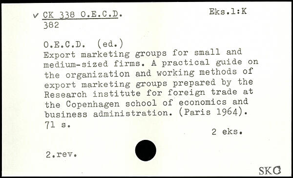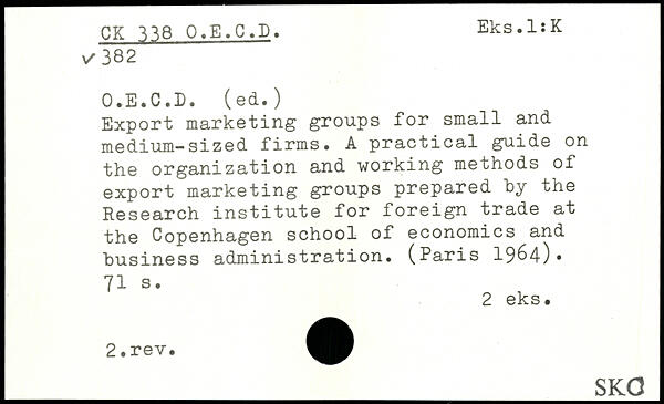 Export marketing groups for small and medium-sized firms. A practical guide on the organization and working methods of export marketing groups prepared by the Research institute for foreign trade at the Copenhagen school of economics and business administration. (