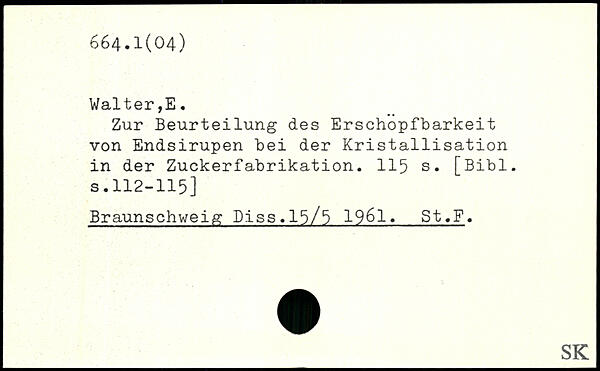 Zur Beurteilung des Erschöpfbarkeit von Endsirupen bei der Kristallisation in der Zuckerfabrikation.